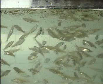 7-8 centiméteres süllőivadékok (Sander lucioperca) nevelése száraz táppal (Fotó: Bercsényi Miklós)