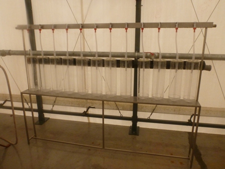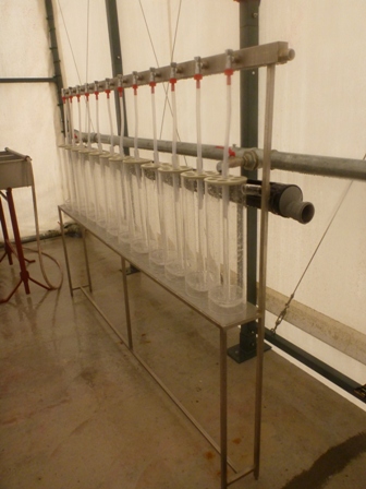 A képen egy 12 db McDonald's típusú keltetőedény elhelyezésére alkalmas komplett állvány látható csapsorral (vízbefolyás) és vízelvezetéssel. Az állvány szétszedhető, mobil, könnyen szállítható, lábai a talaj egyenetlenségeinek kiküszöbölése céljából állítható magasságúak. Anyaga rozsdamentes acél, hossza 2,4 m, szélessége 40 cm, magassága 2 m.