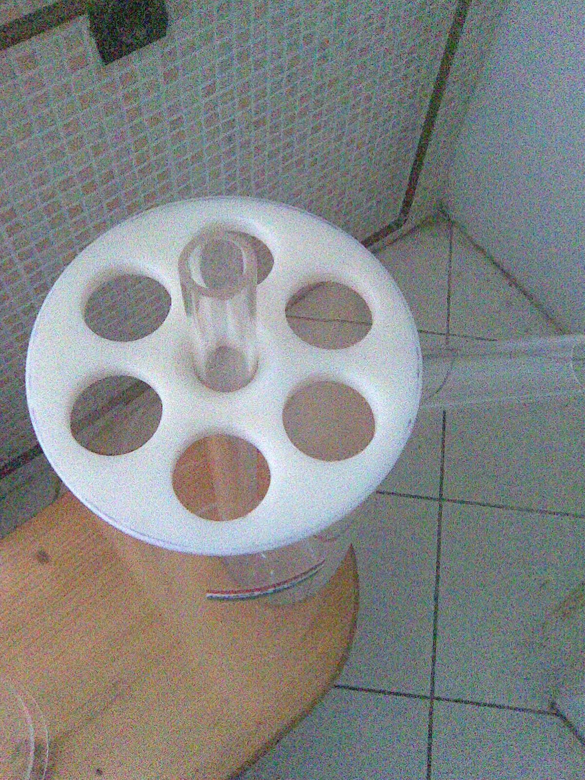 A képen egy 12 db McDonald's típusú keltetőedény elhelyezésére alkalmas komplett állvány látható csapsorral (vízbefolyás) és vízelvezetéssel. Az állvány szétszedhető, mobil, könnyen szállítható, lábai a talaj egyenetlenségeinek kiküszöbölése céljából állítható magasságúak. Anyaga rozsdamentes acél, hossza 2,4 m, szélessége 40 cm, magassága 2 m.